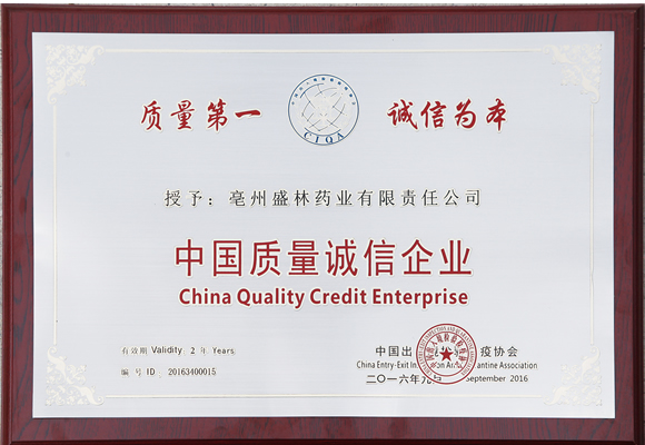 中國(guó)質(zhì)量誠(chéng)信企業(yè)