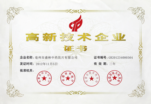 高新技術(shù)企業(yè)證書(shū)