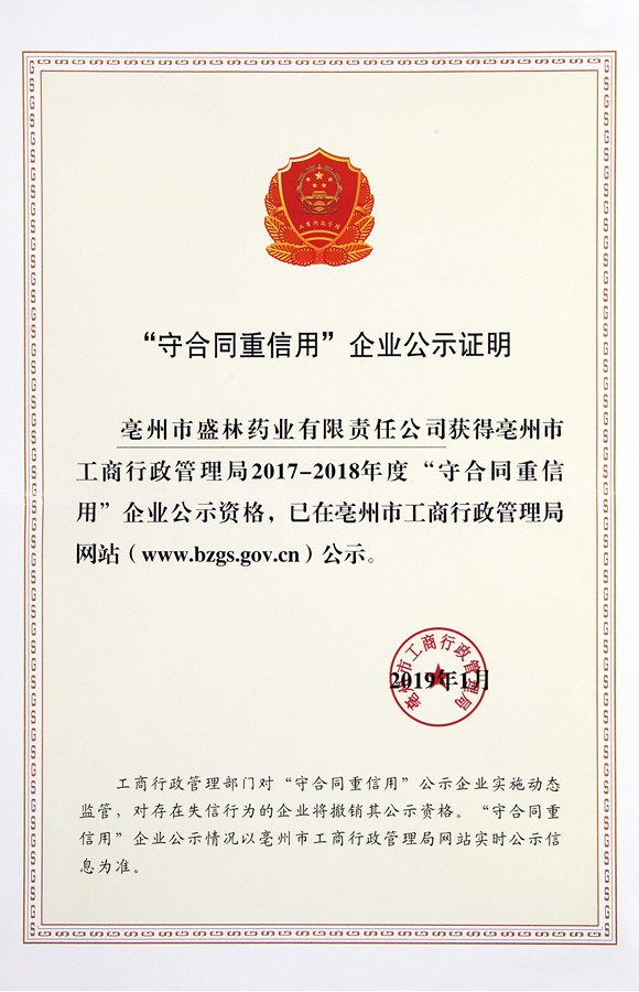 2017-2018年度“守合同重信用”企業(yè)公示證明