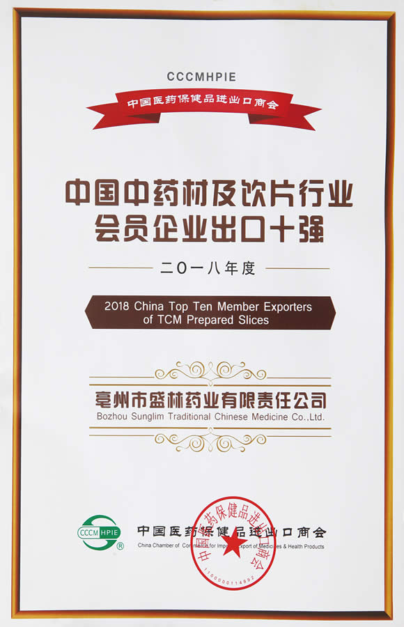 2018年度中國(guó)中藥材及飲片行業(yè)會(huì)員企業(yè)出口十強(qiáng)